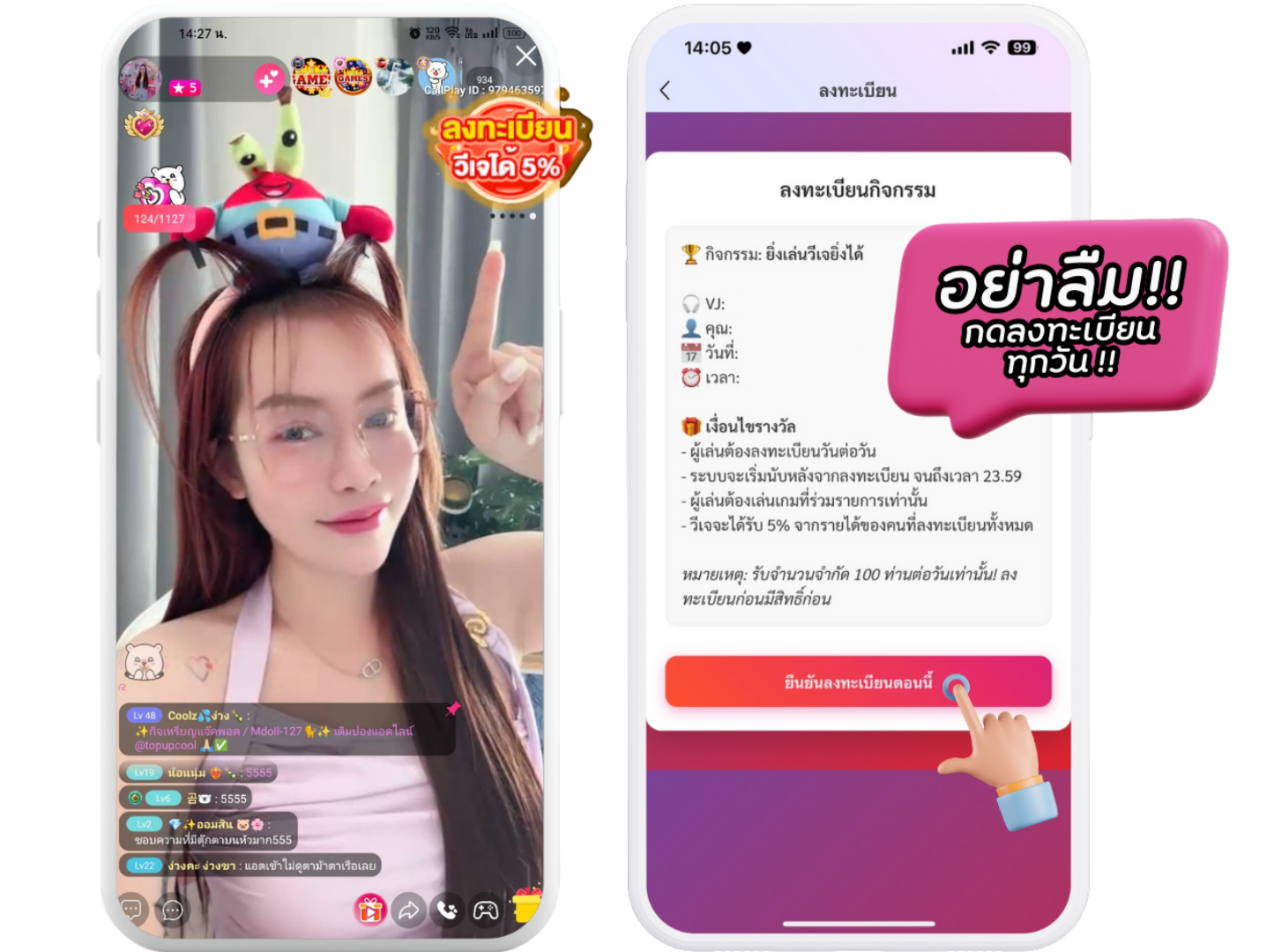 เมื่อมีผู้เล่นลงทะเบียนผ่านหน้าห้องไลฟ์