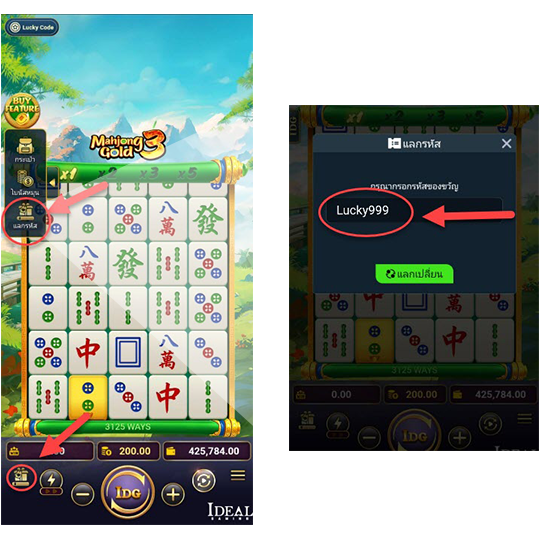1ผู้เล่นจะได้รับรหัสของขวัญ "Lucky999" กดแลกเปลี่ยน เพื่อรับฟรีสปิน