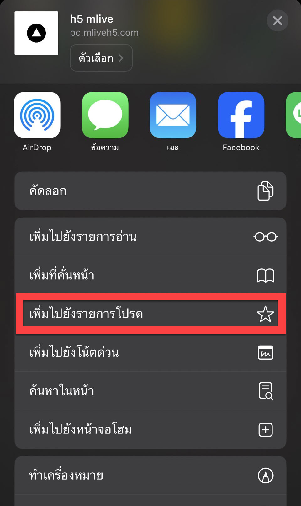 แล้วเลือกที่ เพิ่มไปยังรายการโปรด