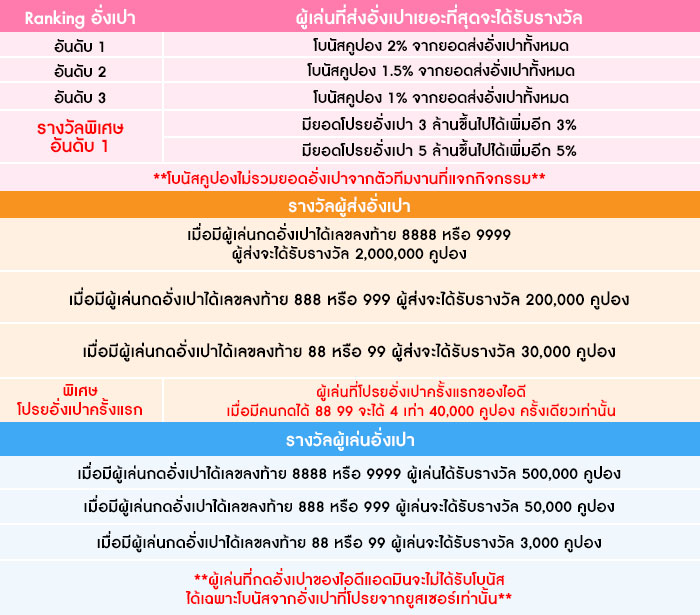 **โบนัสคูปองไม่รวมยอดอั่งเปาจากตัวทีมงานที่แจกกิจกรรม**